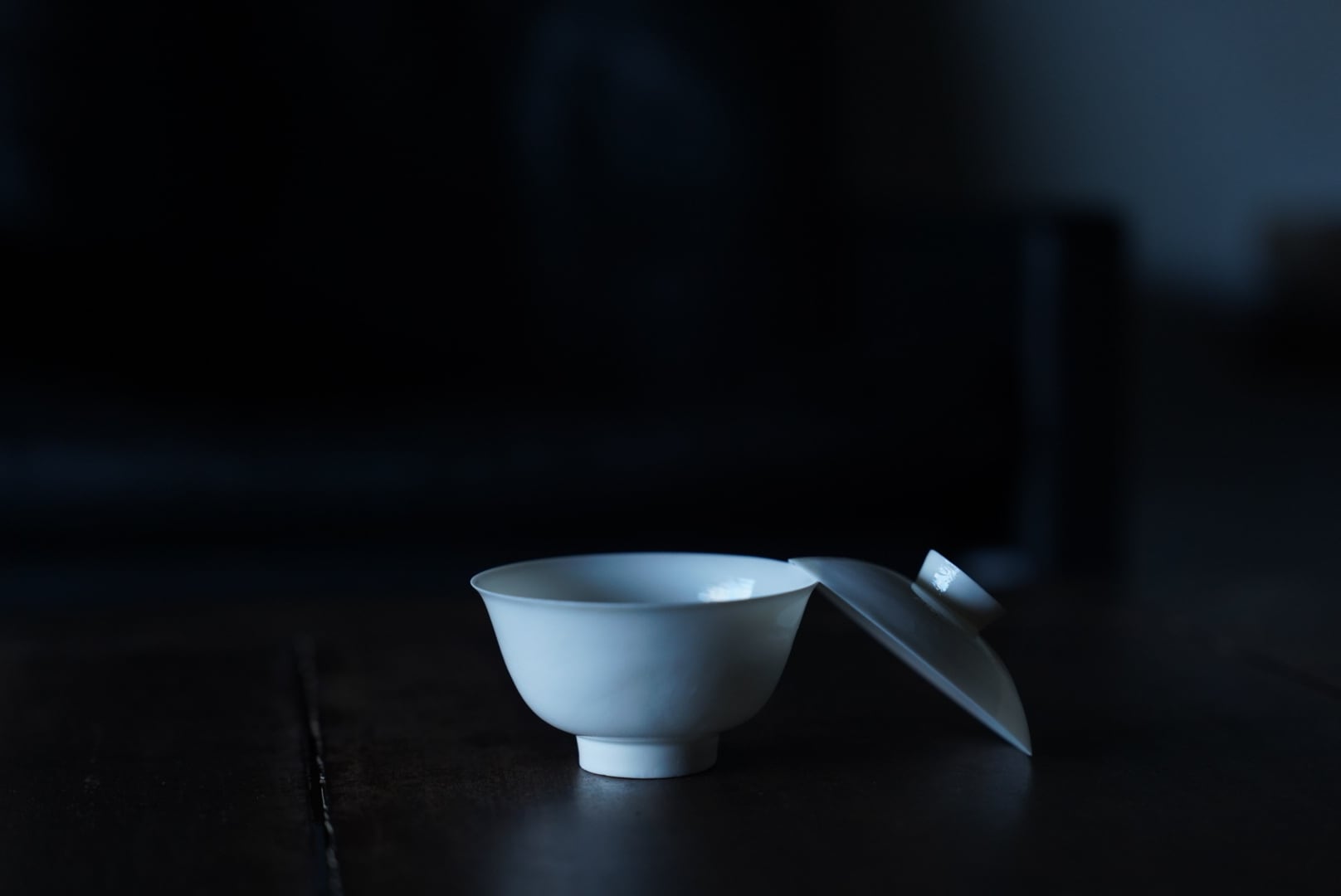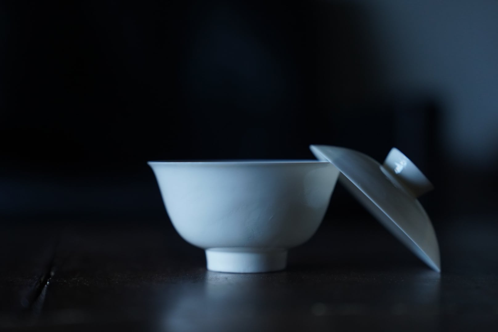 福建省南部、閩南の徳化窯の磁土で限界まで薄く制作された蓋碗。型に手で薄く土をのばす手拓の技法によってつくられています。