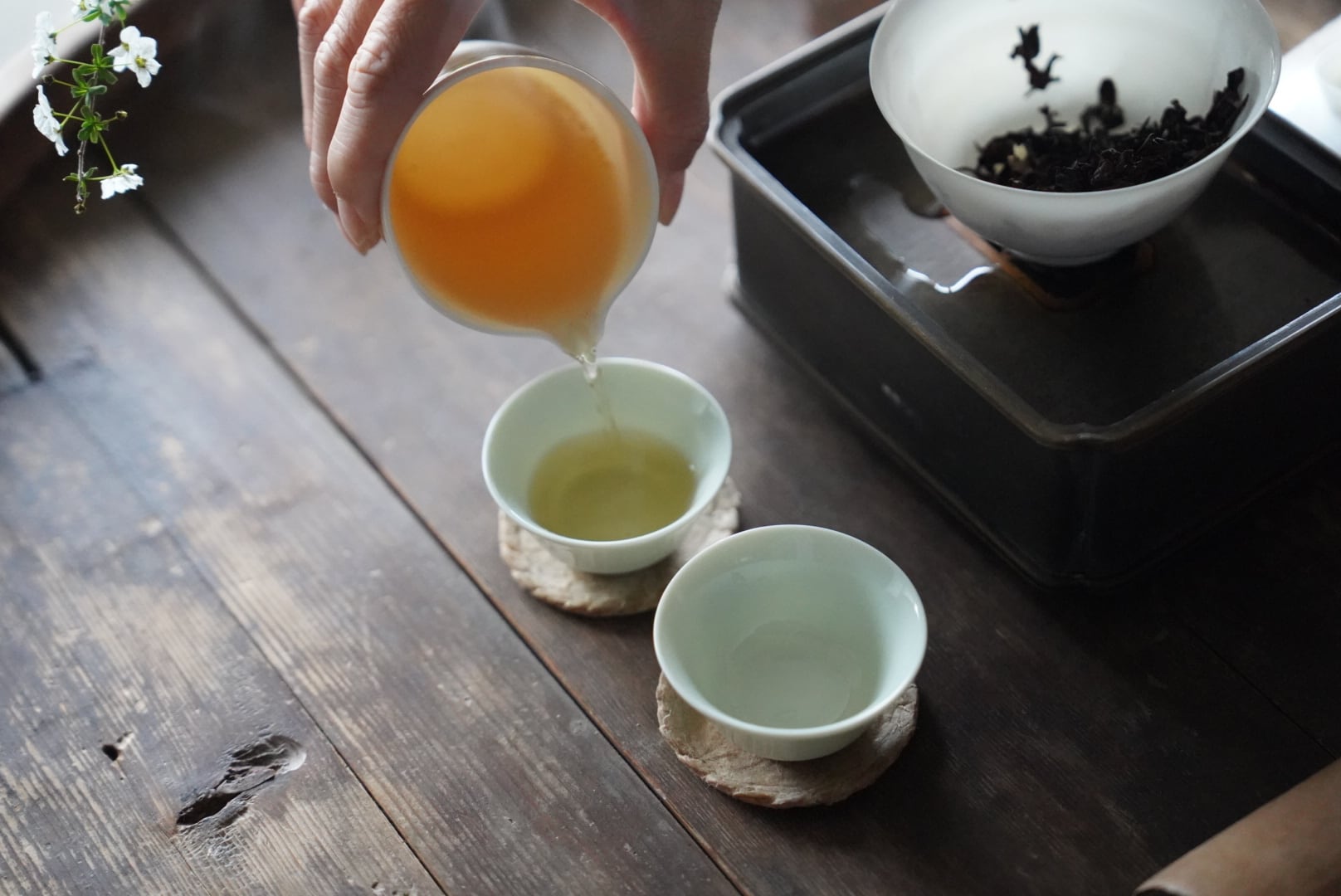 マスカットと蜂蜜が合わさったような、甘くフルーティーで香り高い烏龍茶。味わいは複雑かつ繊細で、うっとりするアロマのような香りと甘い余韻に包まれます。飲み終わった後には、丁寧に手摘みされた美しい一芯二葉の茶殻もぜひご覧ください。