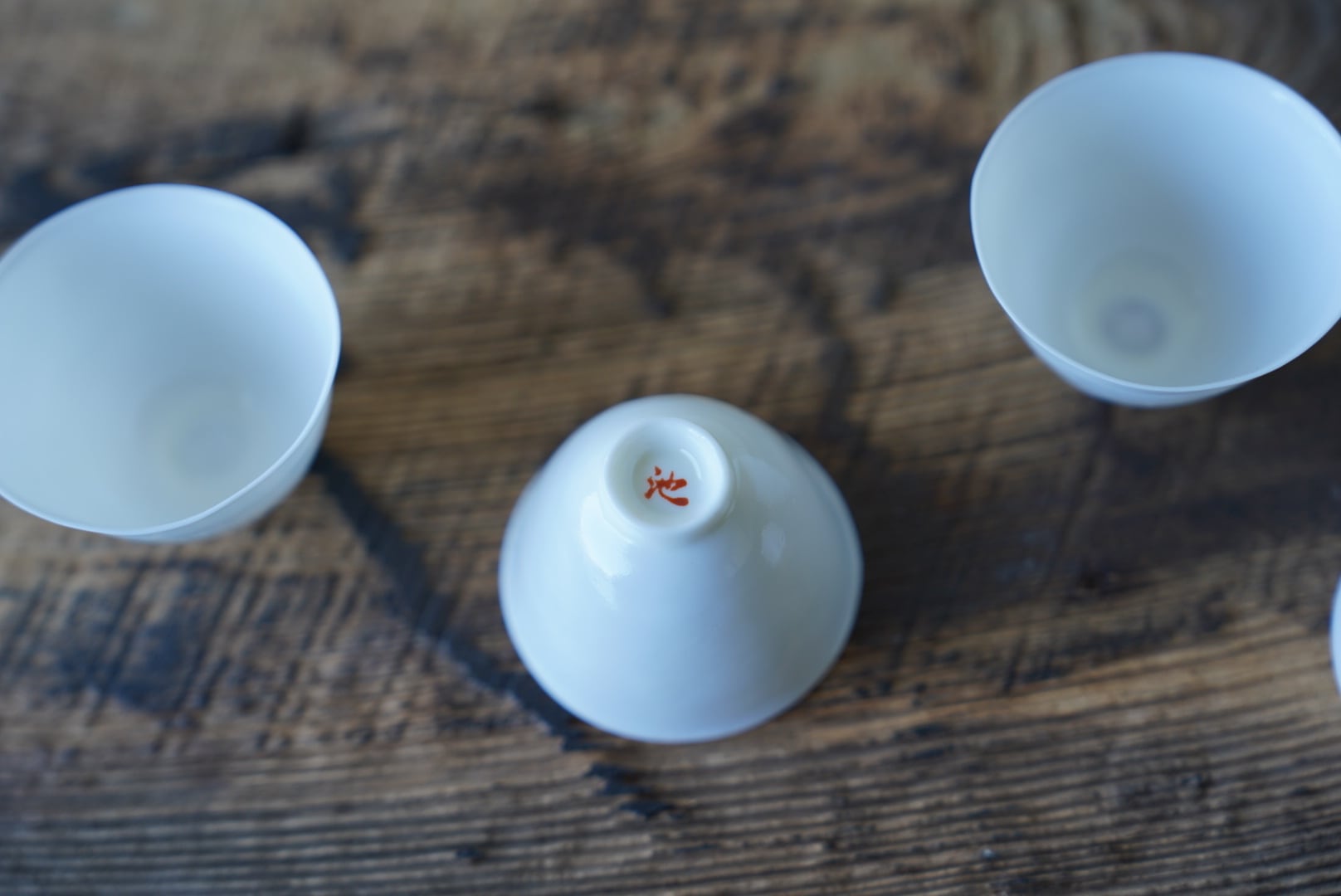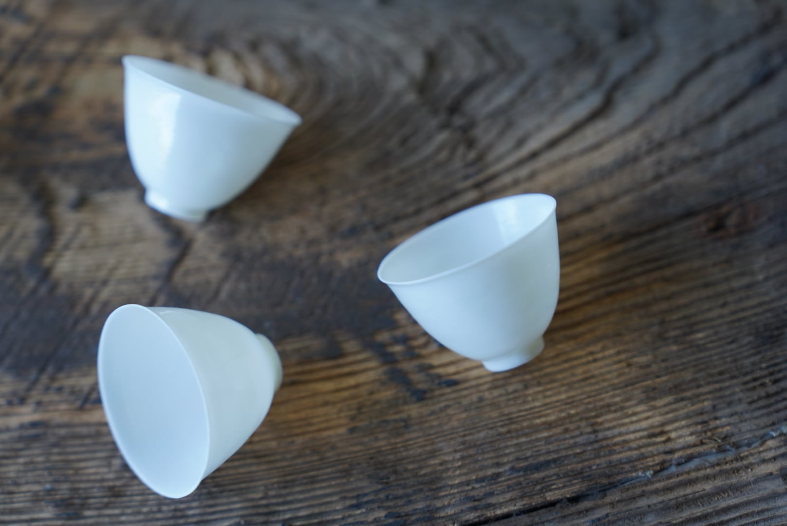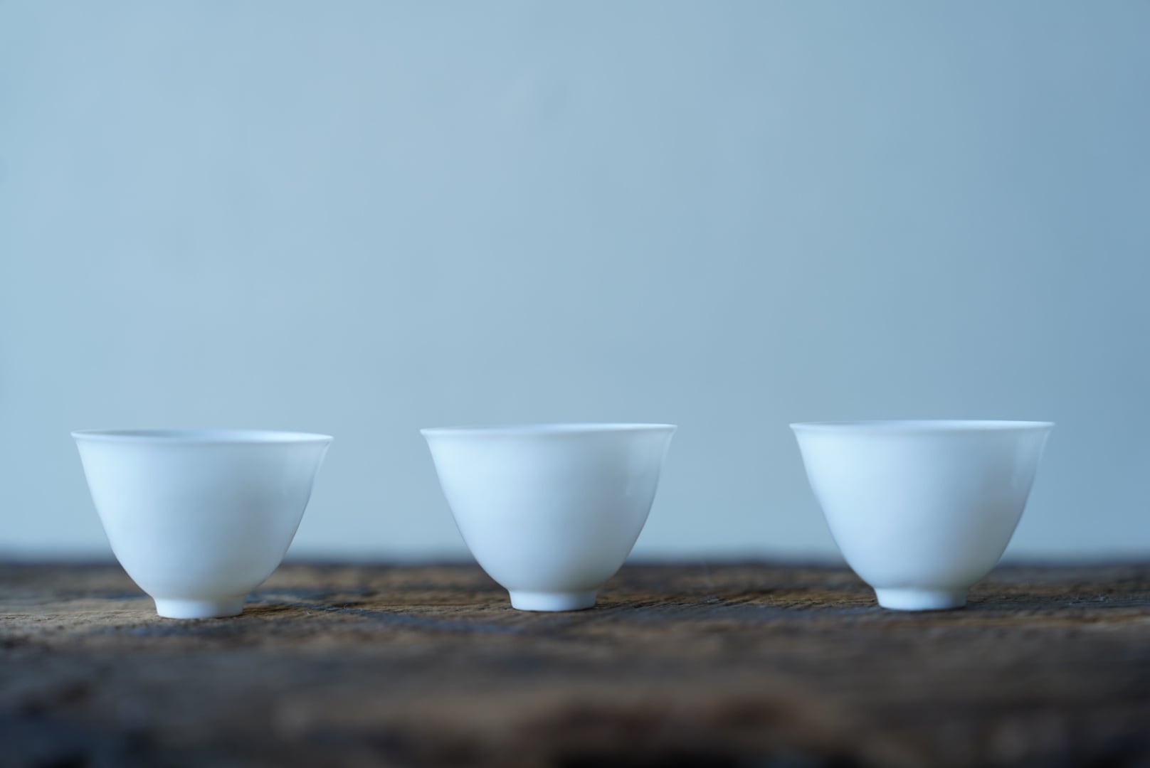 福建省南部、閩南の徳化窯の磁土で限界まで薄く制作された茶杯。型に手で薄く土をのばす手拓の技法によってつくられています。